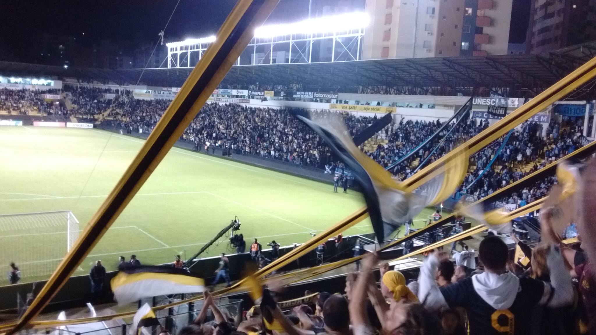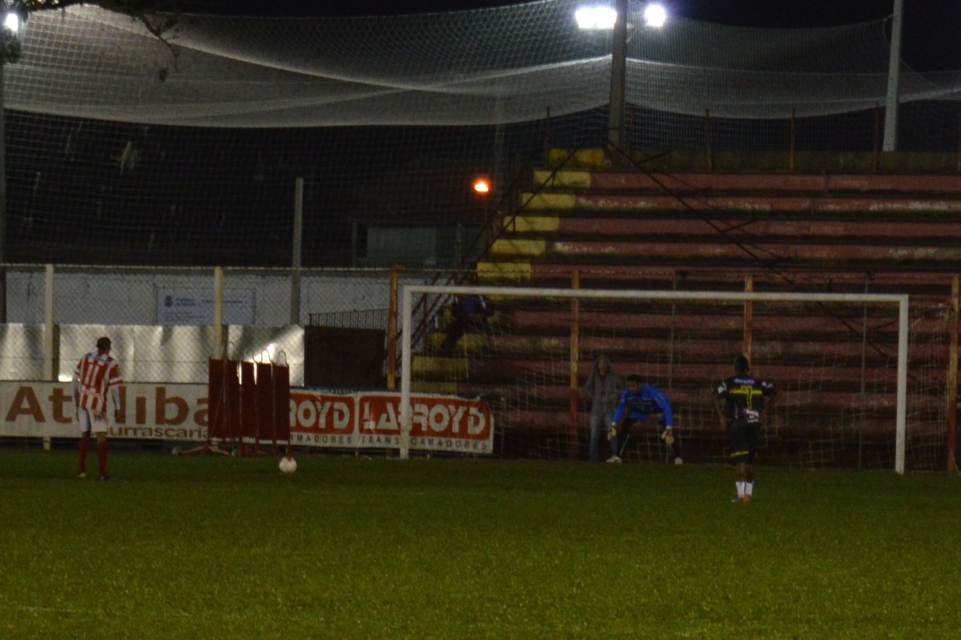 Acompanhado do Matheus, do genial Desprovidos de Fama, e de seu amigo Giovane, me posicionei atrás do gol, ao lado da banda carvoeira. De lá, assisti um Criciúma nervoso, criando boas chances, mas se precipitando nas finalizações. O tricolor gaúcho, com toda a sua expriência em figuras como Douglas e Giuliano, marcou um golzinho ainda no primeiro tempo, com Pedro Rocha. Mas ficou nisso, levando a disputa para os tiros da marca da cal.