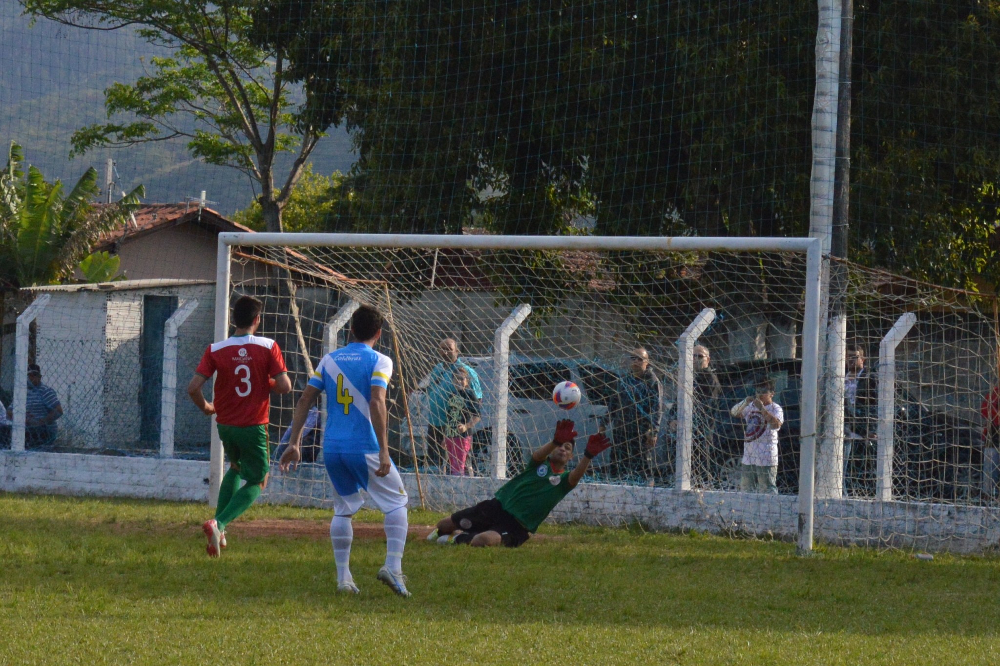 Mal coloquei os pés dentro da cancha e já percebi o que estava rolando: mais um caso de atraso por falta de ambulância (rodadas antes, o jogo entre Fluminense e Jaraguá quase que não aconteceu por questão de segundos). Fiz minhas fotos da arbitragem, do aquecimento e dos times posados, bati um papo com funcionários dos dois times e com o Alex Benício, torcedor do simpático Grêmio Cachoeira, mas nada de bola rolando. Havia passado mais de meia hora e nem sinal da ambulância. O presidente do Curitibanos, já puto da cara com a situação, não queria mais saber do jogo e cogitava abandonar tudo, sem colocar o time para jogar, já que “perder por WO é mais barato”. Enquanto isso, jogadores e técnico pediam calma e aguardavam pacientemente a chegada dos profissionais da saúde. Eis que, quando eu já cogitava sair e ir até Garopaba acompanhar uma peleia do amador de lá, surge a ambulância, faltando exatamente 45 SEGUNDOS para o horário limite da partida (16 horas, uma hora após o marcado). Como aquele gol suado que sai aos 49 do segundo tempo, a chegada da viatura médica foi comemorada efusivamente pela torcida presente – cerca de 30 viventes.